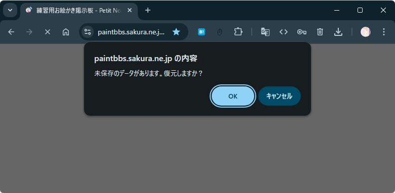 新機能オートセーブで、描画中に自動的にバックアップを作成して、ブラウザバックや、落雷で電源が落ちたり、ブラウザがクラッシュしたり、Chromeのメモリセーバーで画像が破棄されたりしても、ブラウザ内の恒久的保存領域に保存したバックアップから復元できるようになりました。