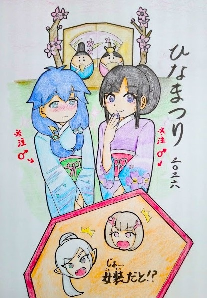 帽子かぶせたくて髪下ろした姿で描きました。